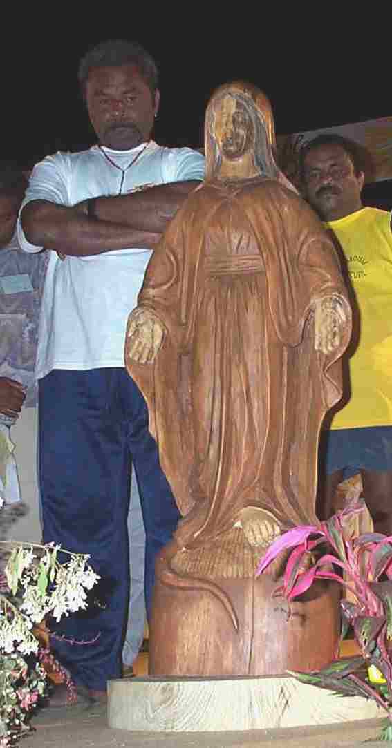 La statue de Notre Dame de Téné, sculptée à Koumac, est présentée coutumièrement par les gens du Nord. |