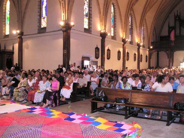 ![]() Le même geste est refait au milieu du recueillement de l'assemblée |
