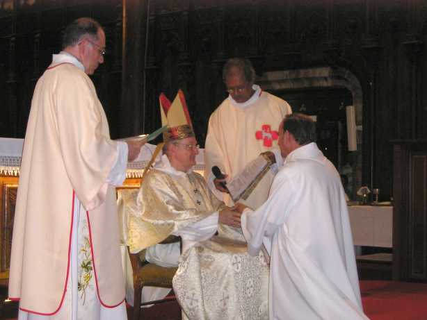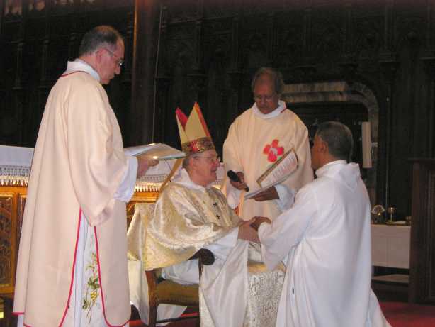 ![]() L'ordination commence par la promesse d'obéissance à l'évêque |