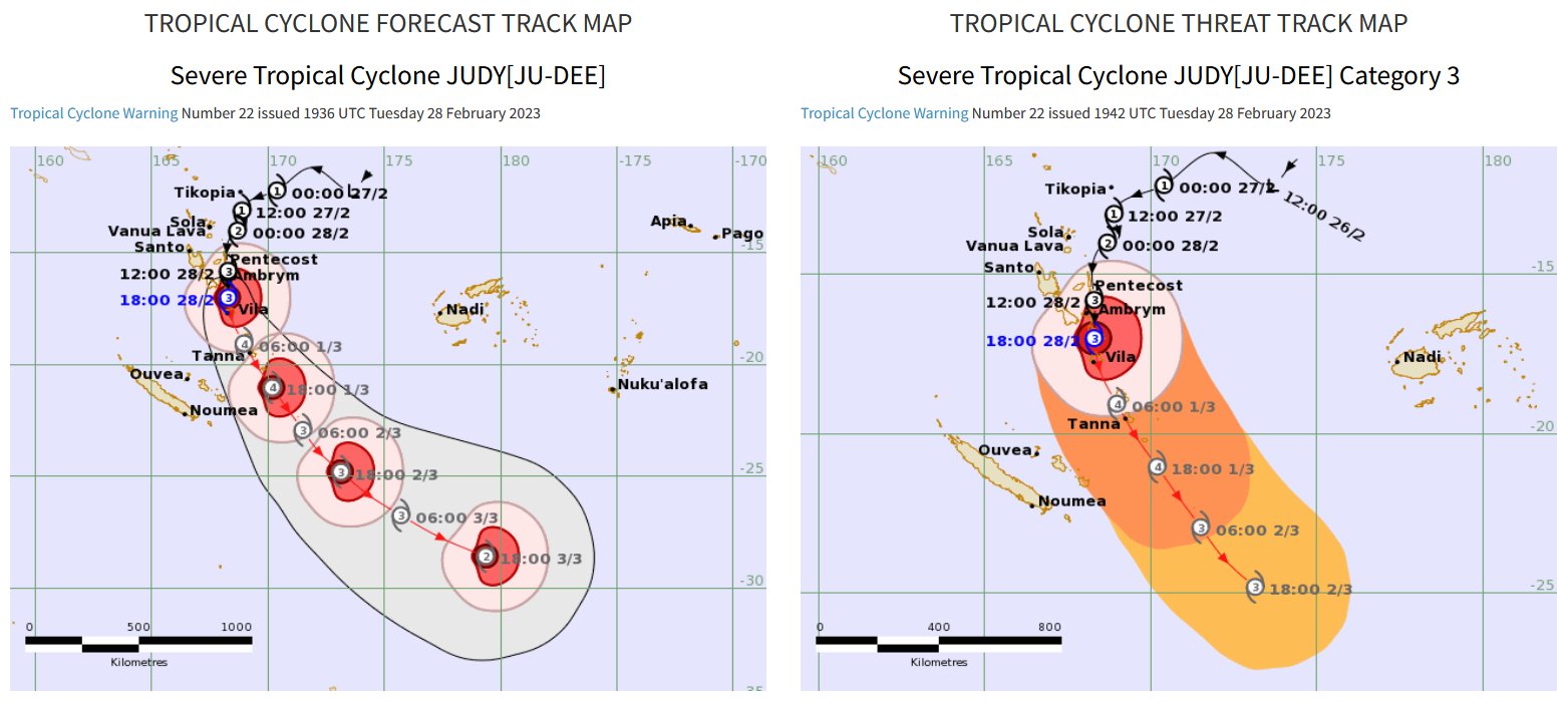Le cyclone Judy du 28 février au 3 mars 2023 selon le site météo de Nandi