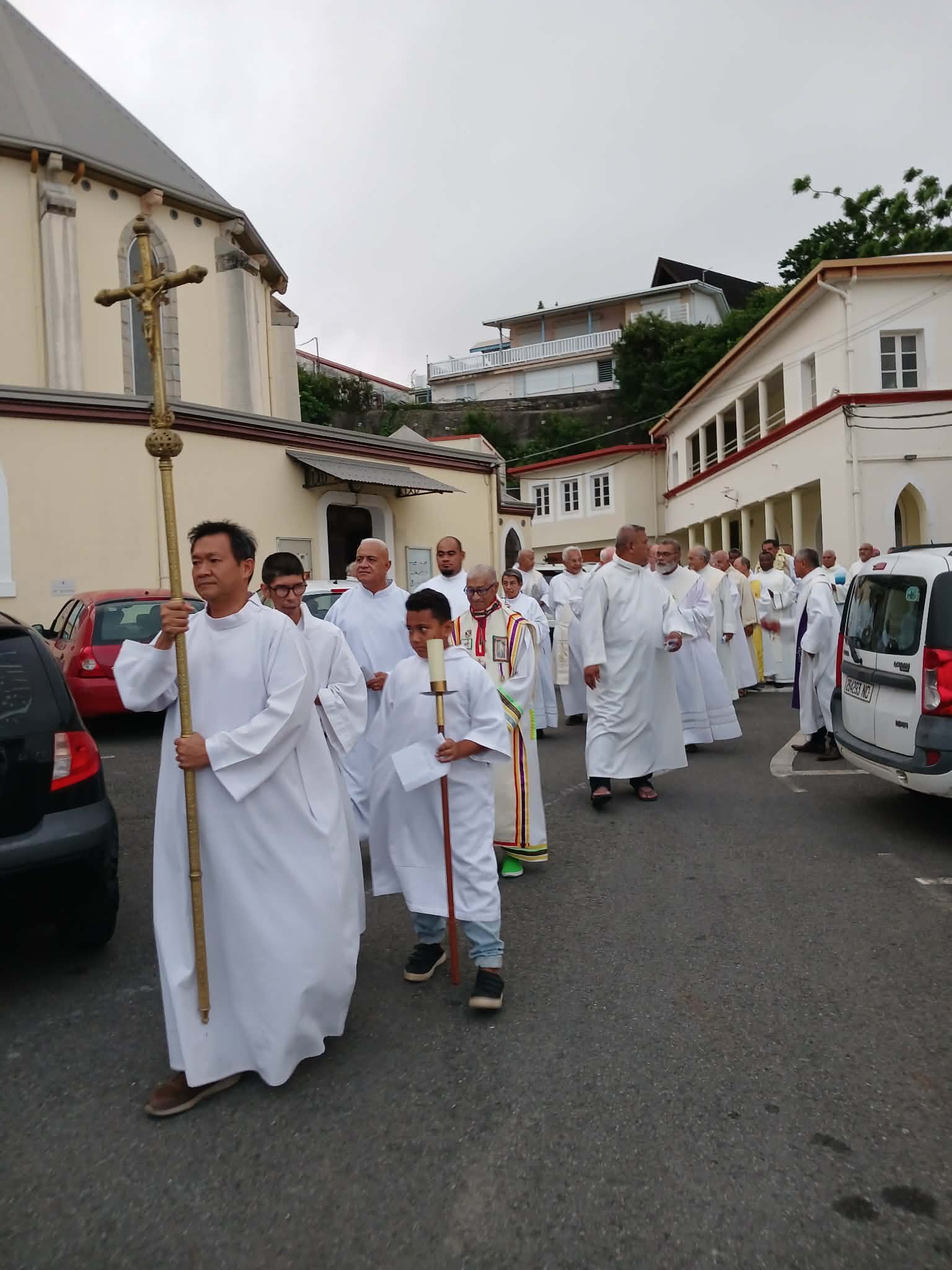 | Le Jeudi 26 mars 2026, en la cathédrale Saint Joseph de Nouméa, une foule nombreuse avec les prêtres et les diacres entouraient Mgr Susitino Sionepoe, à l'occasion de sa deuxième messe chrismale dans son nouveau diocèse. | |