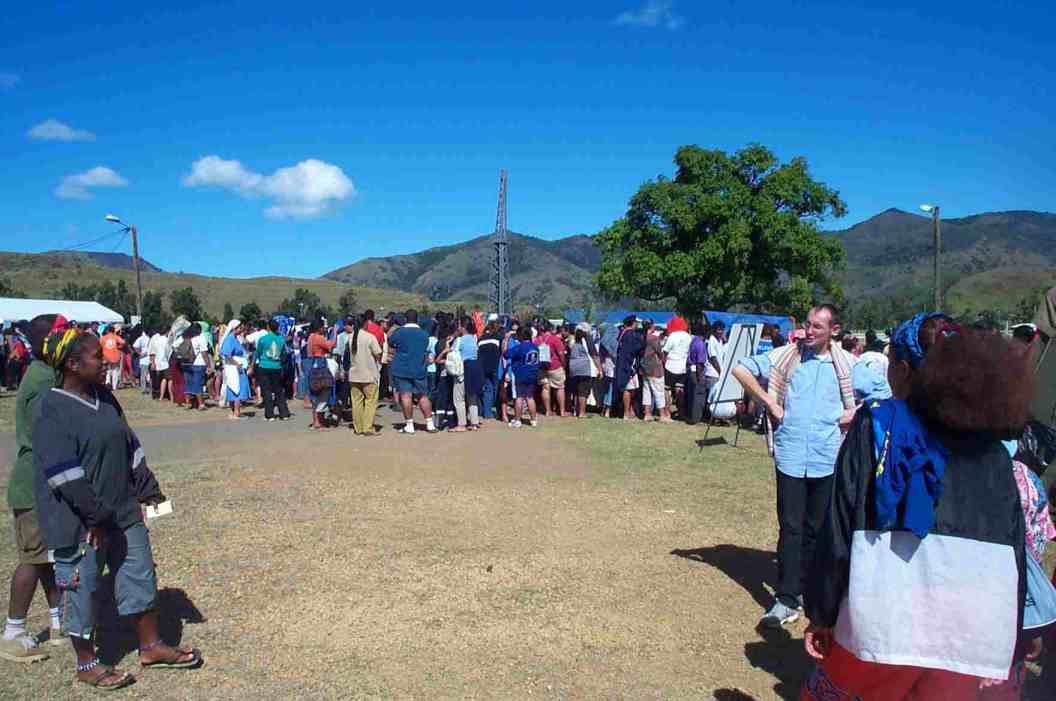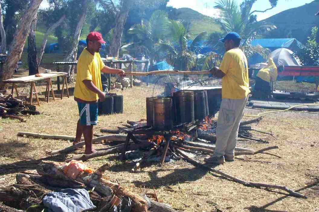 Mardi 25 mai après midi environ 700 jeunes ont convergé vers Téné où ils vont suivre quatre journées de formation, ils ont été reçus par les paroisses d'accueil et le Comité organisateur. Plusieurs enseignements, repris ensuite dans des petits groupes facilitant l'expression, ont été donnés par le Père Colomban, animateur spirituel de la rencontre. L'enseignement de mercredi au début de l'après midi a été fait par Mgr Michel Calvet, archevêque de Nouméa. L'animation des veillées a été confiée au diacre Médéric venu de Tahiti avec son groupe d'animation. |