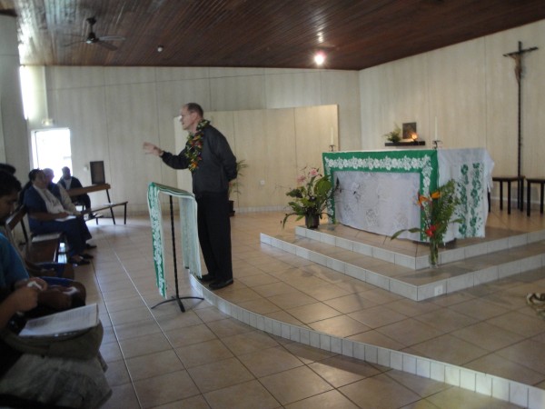 | Les enfants de la chorale "Marista" de Koumac témoignent par leurs voix |  L'Eucharistie clôture cette riche journée |